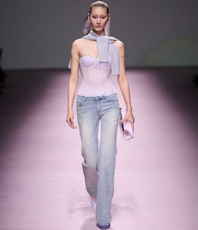 Tại sàn diễn lần này, bộ sưu tập “Azure Reverie” tạo tác động mạnh mẽ nhờ tính kịch nghệ đậm nét. Lấy cảm hứng từ những áng mây trong giấc mơ siêu thực cùng sắc xanh thuần khiết, các thiết kế hiện lên đầy mộng mị và lãng mạn.