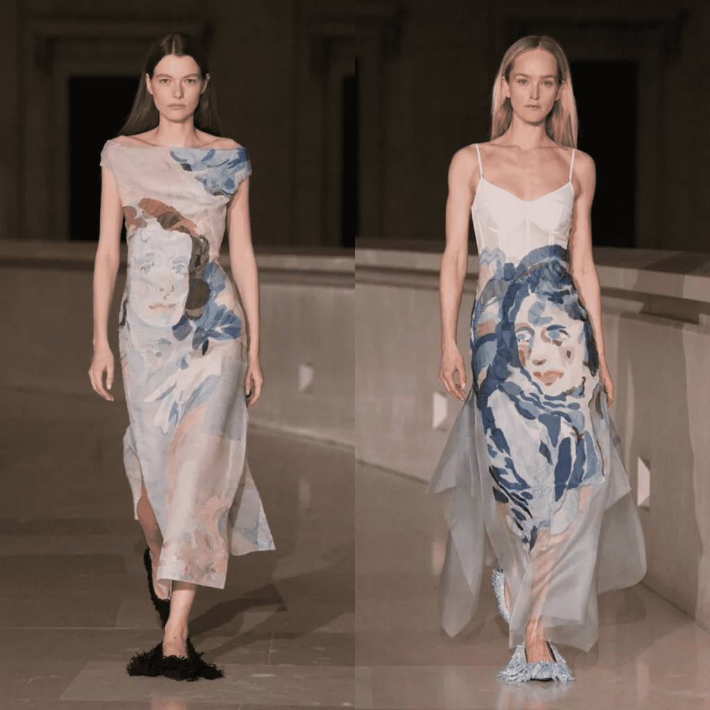 Lấy cảm hứng từ thế giới chân dung trừu tượng của họa sĩ Kaye Donachie, bộ sưu tập Thu/Đông 2025 của nhà thiết kế Erdem Moralioglu mở ra một không gian nơi cảm xúc hội họa được diễn đạt bằng ngôn ngữ thời trang giàu hình ảnh, nhiều tầng lớp và đậm chất thơ.