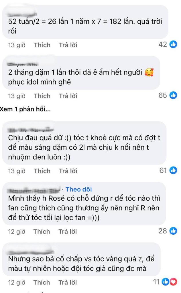 Ngay khi những góc khuất này được tiết lộ, mạng xã hội đã không khỏi xôn xao. Netizen không chỉ choáng ngợp trước độ chuyên nghiệp, chịu chi của ê-kíp mà còn ngả mũ thán phục sức chịu đựng “phi thường” của Rosé. Việc tẩy tóc liên tục đòi hỏi sự hy sinh và khả năng chịu đau rất lớn, vậy mà nữ thần tượng đã âm thầm chịu đựng nó suốt 7 năm qua chỉ để mang đến một hình ảnh hoàn hảo nhất trước công chúng.