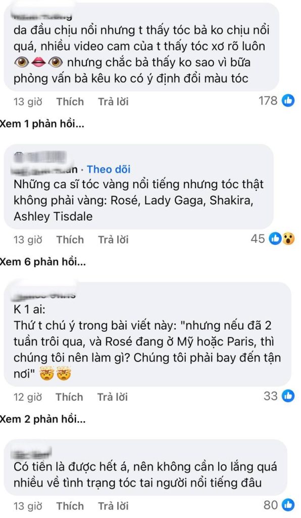 Không ít lời khuyên từ cộng đồng mạng đã được đưa ra, từ việc đề xuất Rosé sử dụng tóc giả để giảm tải áp lực, cho đến những mong mỏi cô nàng hãy để tóc “nghỉ ngơi” bằng cách nhuộm lại màu tối nguyên thủy. Suy cho cùng, một biểu tượng nhan sắc là điều tuyệt vời, nhưng sức khỏe của thần tượng mới là ưu tiên hàng đầu.